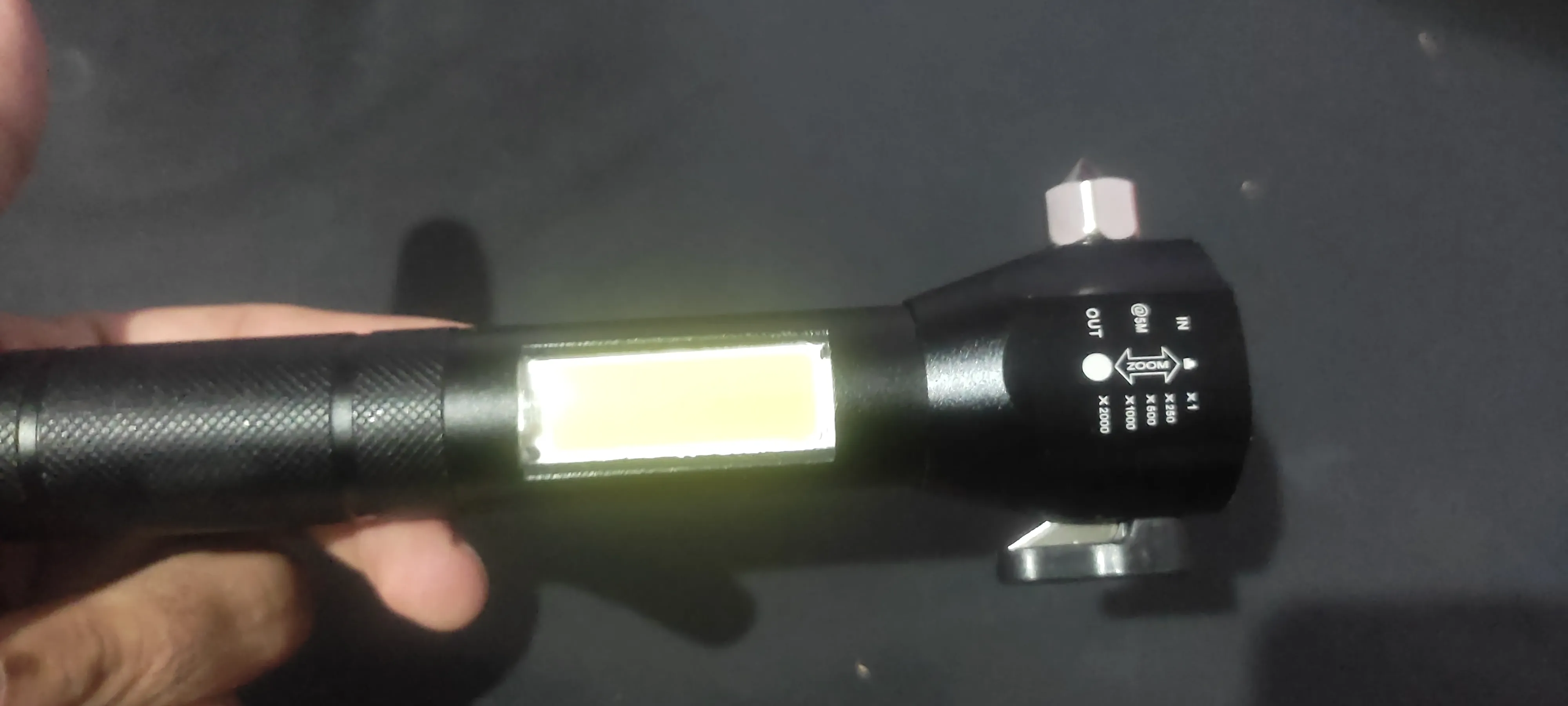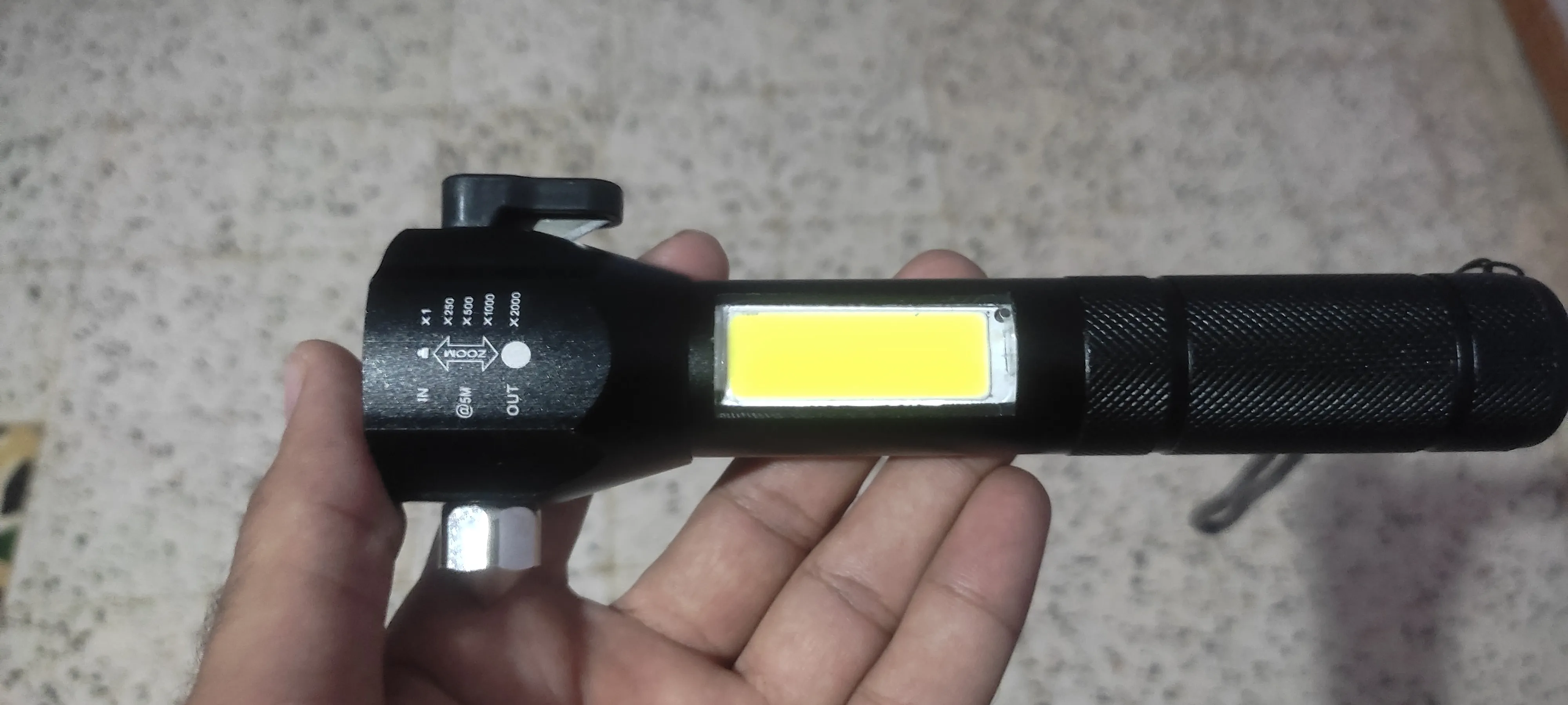 مزود بضوء جانبي عالي السطوع بالإضافة لمغناطيس لاستعماله كمصباح ثابت.