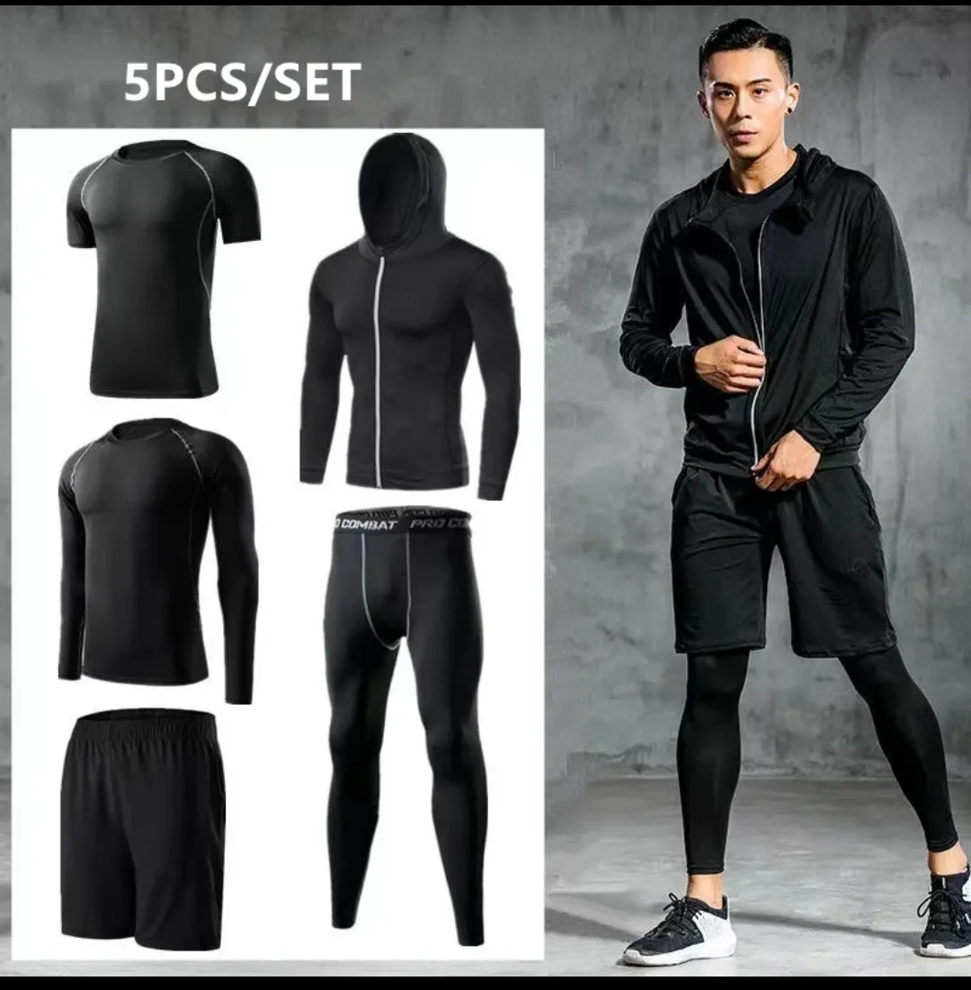 اللباس الرياضي يحتوي على 5 قطع كما توضح الصورة مصنوع بقماش قابل لإمتصاص العرق ومساعد الرياضين على تحرك بكل أريحية ، مصممة بطريقة عصرية وأنيقة تساعدك على ممارسة رياضتك
